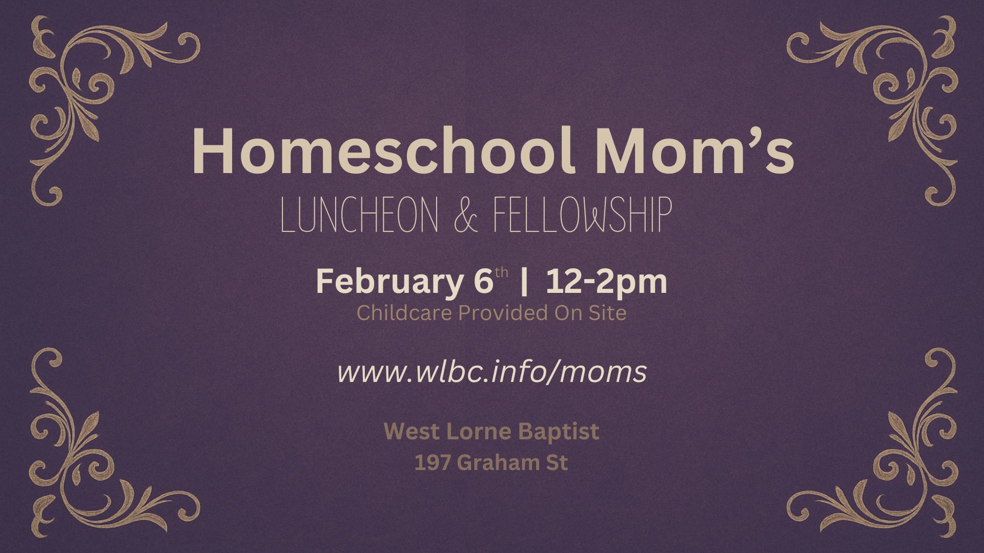 Calling all homeschool moms in our community! Join us for a special luncheon and fellowship time designed to encourage and bless you in your homeschooling journey. Enjoy a delicious meal, uplifting conversations, and a chance to connect with like-minded moms. Childcare will be provided, so you can relax and recharge.